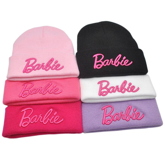 Barbie Knitted Hat Kawaii Y2K Girls Cute Woolen Hat Female Ski Cap Soft Warm Elastic All Match Leisure Hats Kids Adults Gifts